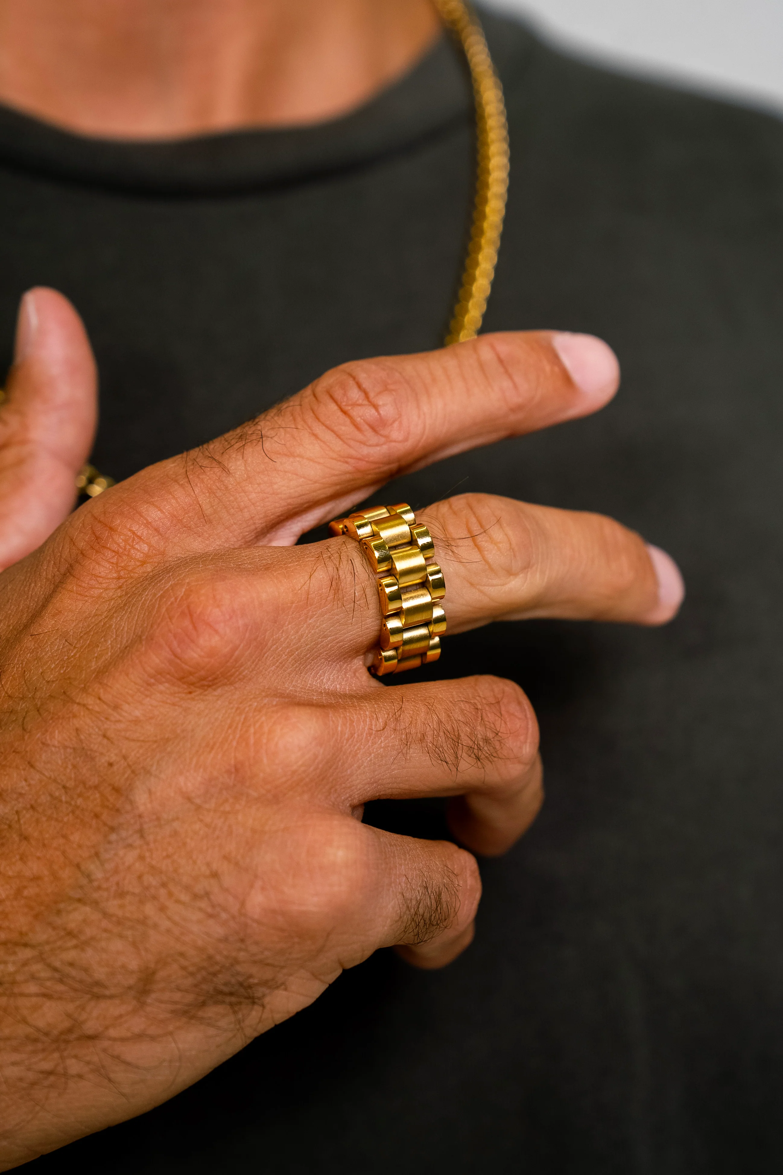 The "MONTRE" Link Ring in gold is a testament to contemporary style. Its unique link design in radiant gold is perfect for those who appreciate a ring that's both innovative and elegant.